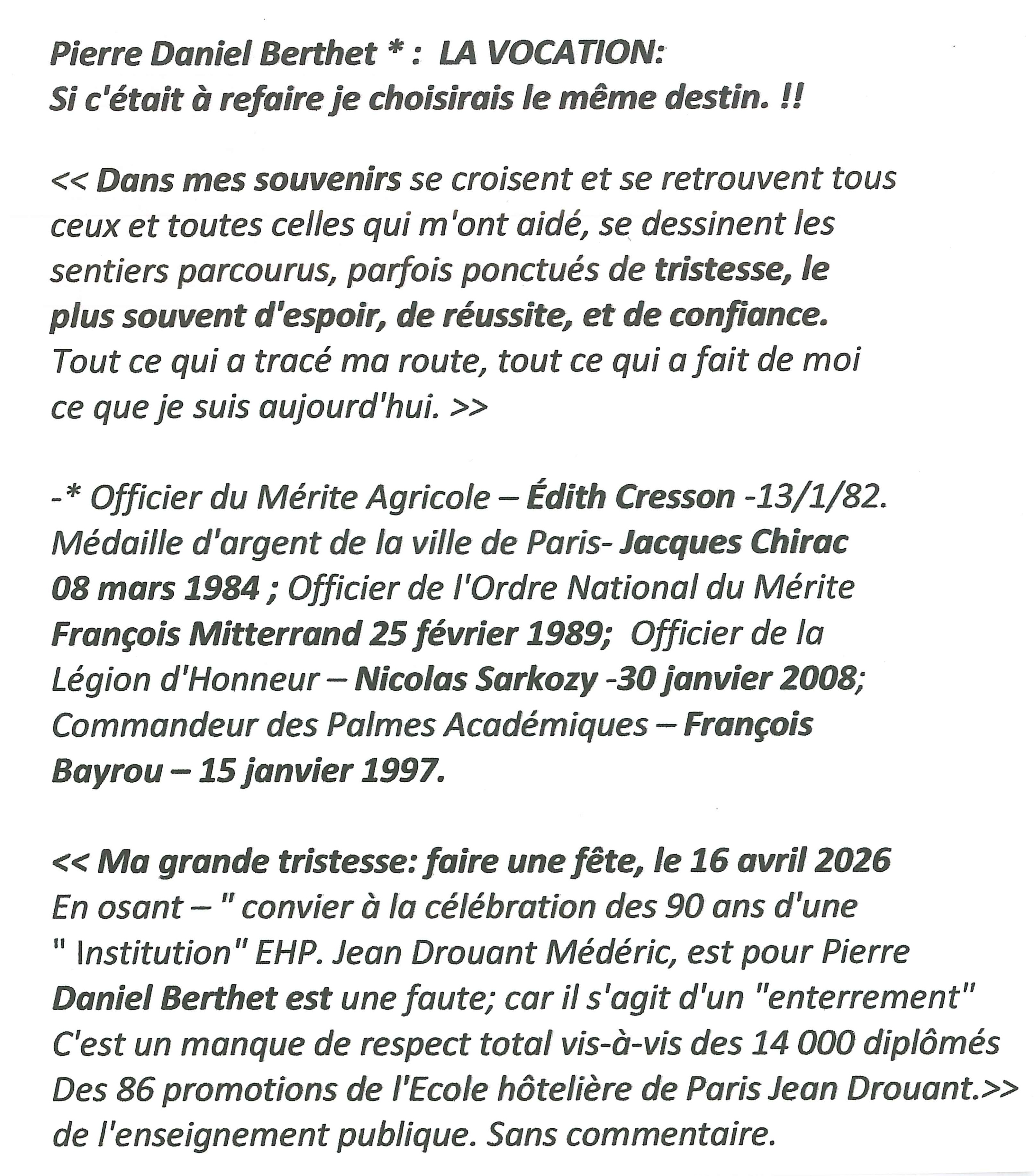Cf – Archives Association des ancien(ne)s élèves des promotions de l'enseignement technologique hotelier ' PROMATEL PARIS ILE-DE-FRANCE' Pierre Berthet, président du conseil d'administration. – création de l'association 11 octobre 1944 – siège social Paris. Paris, le 01 novembre 2024. www.promatel.info www.unatech.eu - pierre.berthet0887@orange.fr